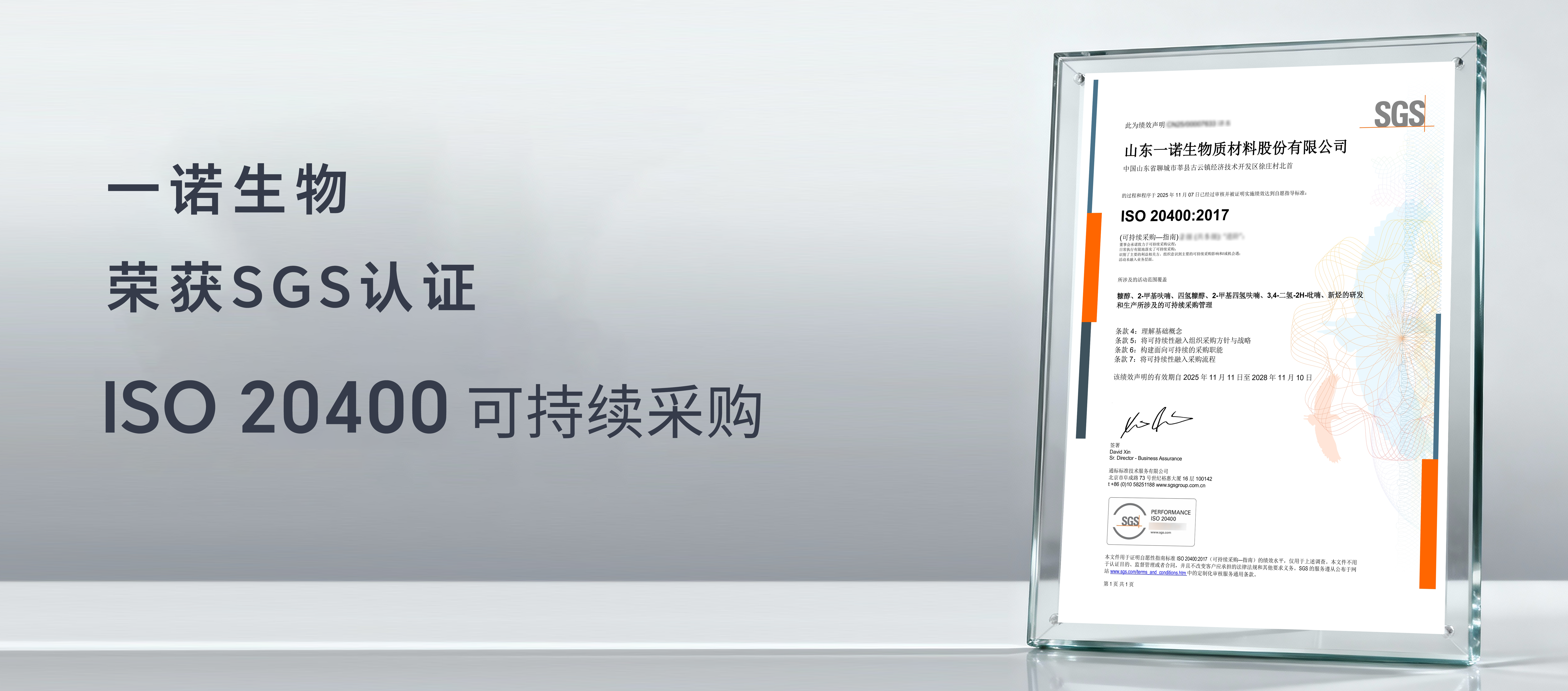 面向未來,一諾生物將持續(xù)深化“玉米芯 → 生物基平臺(tái)化學(xué)品 → 高附加值綠色材料”這一路徑的系統(tǒng)化建設(shè),以更高的標(biāo)準(zhǔn)、更科學(xué)的方法和更堅(jiān)實(shí)的行動(dòng),推動(dòng)非糧生物基行業(yè)邁向更加可持續(xù)、更具國(guó)際競(jìng)爭(zhēng)力的高質(zhì)量發(fā)展方向。ISO 20400 的通過不是終點(diǎn),而是公司邁向更高的可持續(xù)治理水平、更負(fù)責(zé)任供應(yīng)鏈體系以及更具全球影響力的綠色制造企業(yè)的新起點(diǎn)。